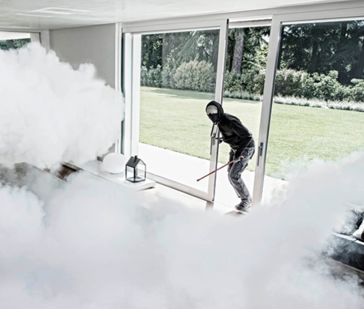 The moment an intrusion is detected, dense fog is deployed in seconds, stripping visibility and control from the intruder before damage can occur.